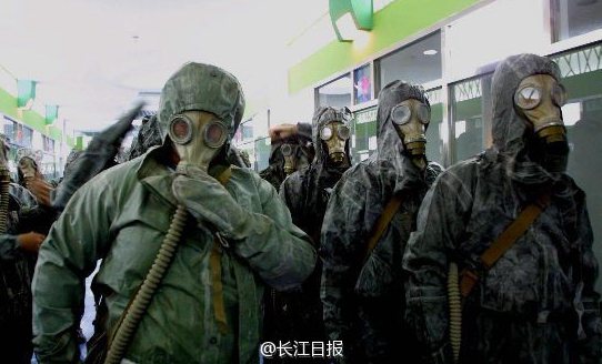圖為中國(guó)籌建的第一支國(guó)家核化生應(yīng)急救援隊(duì)據(jù)天津“濱海新區(qū)8•12危險(xiǎn)品倉(cāng)庫(kù)爆炸救援現(xiàn)場(chǎng)指揮部”發(fā)布的消息:截至13日21時(shí),此次爆炸事故已造成50人死亡,包……