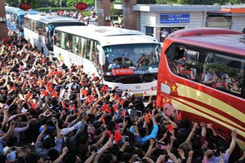 安徽一中學(xué)萬名家長送考生 場面震撼