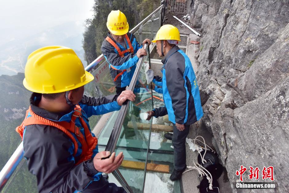 4月中旬,被稱為“東方天空之路”的張家界天門山西線玻璃棧道關(guān)閉進(jìn)行維護(hù)整修,本次維護(hù)整修主要是更換棧道玻璃。4月21日,棧道新玻璃已鋪設(shè)完成,后續(xù)工作正在……