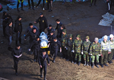 昨日,救援人員將搜尋到的乘客遺體搬上岸。當(dāng)日,搜救人員在事故現(xiàn)場附近陸續(xù)尋獲5名罹難者遺體。仍有3名旅客下落不明。新華社記者 金立旺 攝
