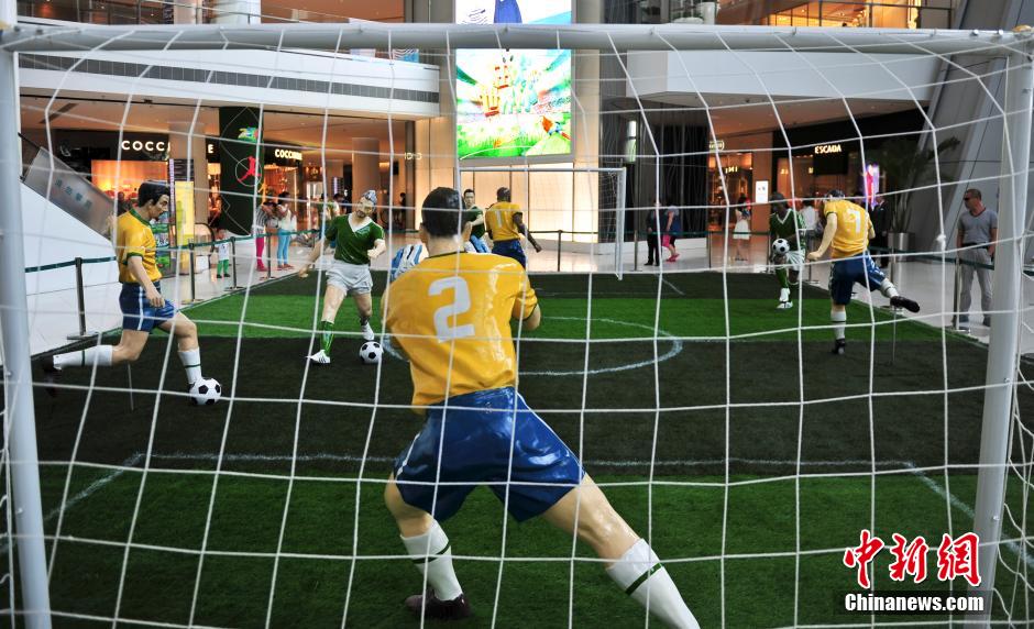 6月11日,濟(jì)南一商家將世界杯巴西隊(duì)“主場(chǎng)”比賽模型搬進(jìn)商場(chǎng),吸引消費(fèi)者關(guān)注。2014年世界杯足球賽開(kāi)賽在即,為迎接此項(xiàng)盛事,濟(jì)南的商家紛紛打造別具匠心的球……