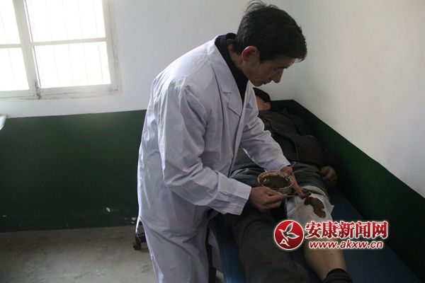 肖明國在給類風濕關節(jié)炎患者涂抹草藥