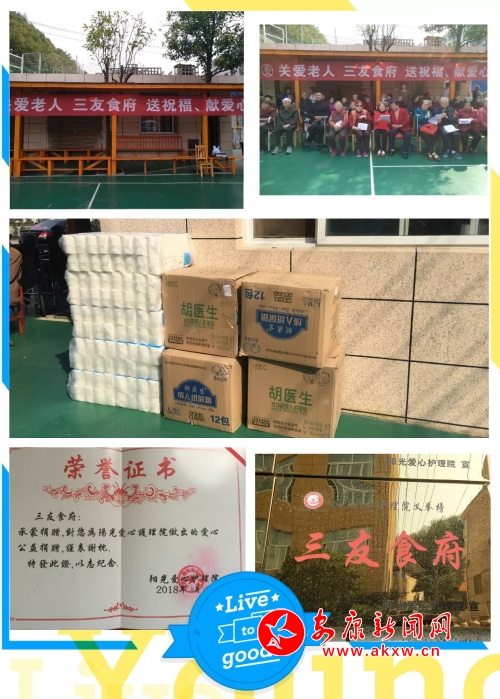 安康新聞網(wǎng)訊(記者 周健) 愛不是靠說,而是靠做。說得再多不如踏實去做,愛老關鍵靠行動。昨天是農(nóng)歷9月9日重陽節(jié),為關愛老人,三友食業(yè)免費為護理院老人送溫暖,送早餐、紙巾,尿不濕等老人用品。并在這段時間里為70歲以上老人提供免費早餐。