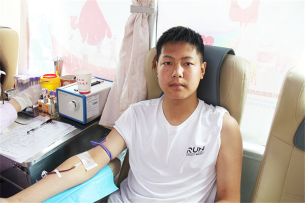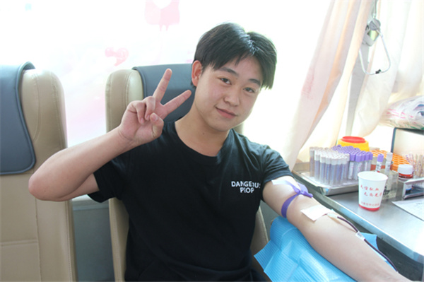 金濤濤是汽修專業(yè)四年級的學(xué)生,當(dāng)天他第一個(gè)走上獻(xiàn)血車,已經(jīng)第四次獻(xiàn)血的他顯得非常輕松。他告訴我們,自己初次獻(xiàn)血是十八歲,之后每年時(shí)間到了都主動來獻(xiàn)血,上次他還拉上了爸媽,一家三口一起獻(xiàn)了血。金濤濤覺得獻(xiàn)血特別有意義,對自己的身體有好處,還能救人,每次收到血站發(fā)來的用血短信心里都超級自豪,就想多喊幾個(gè)人一起來,他說今后一定爭取把全宿舍的人都動員起來,多獻(xiàn)血多出力多助人!