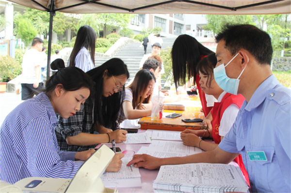 現(xiàn)場除了積極獻(xiàn)血的同學(xué),參與服務(wù)的志愿者們也非常熱情,他們細(xì)心地指導(dǎo)同學(xué)填寫體檢表,為獻(xiàn)血者倒水,發(fā)放紀(jì)念品,向前來咨詢的同學(xué)宣傳無償獻(xiàn)血,不少人也在輪換休息后走上獻(xiàn)血車伸出手臂勇敢獻(xiàn)血。
