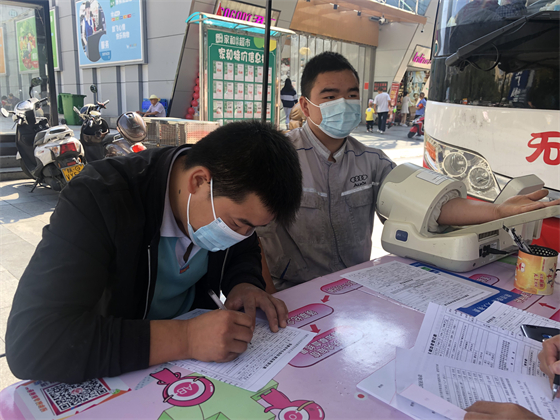 家在西安的劉盼與妻子分屬兩地工作,每逢節(jié)假日他都會開車來安康與妻子一起團聚,中秋這天照例和妻子出門過二人世界的劉盼在獻血車前停下了腳步。“上次在西安獻血都好幾年前了,今天日子好,我去獻個血吧?”說完劉盼拉著妻子一起上了獻血車。等待初篩結(jié)果過程中,他一直拉著妻子的手說笑,夫妻倆顯得親密無間。檢驗結(jié)果合格后劉盼很爽快地要捐獻400毫升血液。