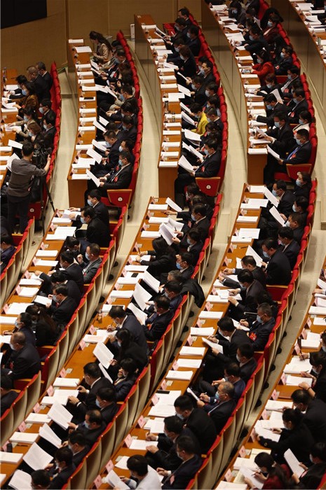 會(huì)場(chǎng)布置簡(jiǎn)樸,氣氛莊重?zé)崃。大?huì)主席臺(tái)上,帷幕正中的國(guó)徽在鮮艷的紅旗映襯下熠熠生輝。主席臺(tái)對(duì)面懸掛著“高舉習(xí)近平新時(shí)代中國(guó)特色社會(huì)主義思想偉大旗幟,把握新發(fā)展階段,貫徹新發(fā)展理念,構(gòu)建新發(fā)展格局,只爭(zhēng)朝夕、真抓實(shí)干,奮力譜寫陜西新時(shí)代追趕超越新篇章”的橫幅,鼓舞人心、催人奮進(jìn)。大會(huì)主席團(tuán)常務(wù)主席劉國(guó)中、胡衡華、劉小燕、姜鋒、朱靜芝、郭青、梁宏賢、戴征社、郭大為、韓水岐在主席臺(tái)前排就座。在主席臺(tái)就座的還有:趙一德、韓勇、馬中平、張廣智、梁桂、徐新榮、王曉、王興寧、莊長(zhǎng)興、王浩、楊志斌、大會(huì)主席團(tuán)其他成員,副省長(zhǎng),省政協(xié)副主席,省高級(jí)人民法院院長(zhǎng),省人民檢察院代檢察長(zhǎng),在我省的十三屆全國(guó)人大常委會(huì)委員,省軍區(qū)、武警陜西省總隊(duì)主要負(fù)責(zé)人,在我省的副部級(jí)高等院校主要負(fù)責(zé)人,省人大代表、省政協(xié)委員中的省級(jí)干部等。擔(dān)任過(guò)我省正省級(jí)職務(wù)在陜西的老同志、其他非住會(huì)列席人員通過(guò)電視、網(wǎng)絡(luò)收看大會(huì)現(xiàn)場(chǎng)直播。省十三屆人大五次會(huì)議應(yīng)到代表559人,出席本次全體會(huì)議的代表521人,符合法定人數(shù)。9時(shí)整,主持會(huì)議的劉國(guó)中宣布:陜西省第十三屆人民代表大會(huì)第五次會(huì)議開幕。全體起立,奏唱國(guó)歌。
