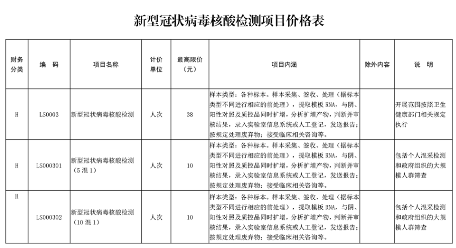 據(jù)悉,為更加有效應(yīng)對疫情形勢變化,進(jìn)一步做好新冠肺炎疫情常態(tài)化防控工作,減輕群眾負(fù)擔(dān),經(jīng)研究,我省決定調(diào)整公立醫(yī)療機(jī)構(gòu)新型冠狀病毒核酸檢測項目價格。醫(yī)療機(jī)構(gòu)按照相關(guān)規(guī)定開展的新型冠狀病毒核酸檢測項目價格由每人次最高限價60元調(diào)整為38元(含檢測試劑),5人混合檢測和10人混合檢測價格統(tǒng)一調(diào)整為每人次10元,下浮不限。屬于“應(yīng)檢盡檢”的,可按規(guī)定采用多人混檢;屬于“愿檢盡檢”的,應(yīng)為其同時提供單檢和混檢服務(wù),檢測機(jī)構(gòu)單日檢測人數(shù)較多的,可以應(yīng)用多人混檢,也可按單人單檢方式檢測并計費(fèi)。另外,入境人員、密切接觸者、密接的密接等高風(fēng)險人員應(yīng)在集中隔離期間嚴(yán)格落實單人單檢。