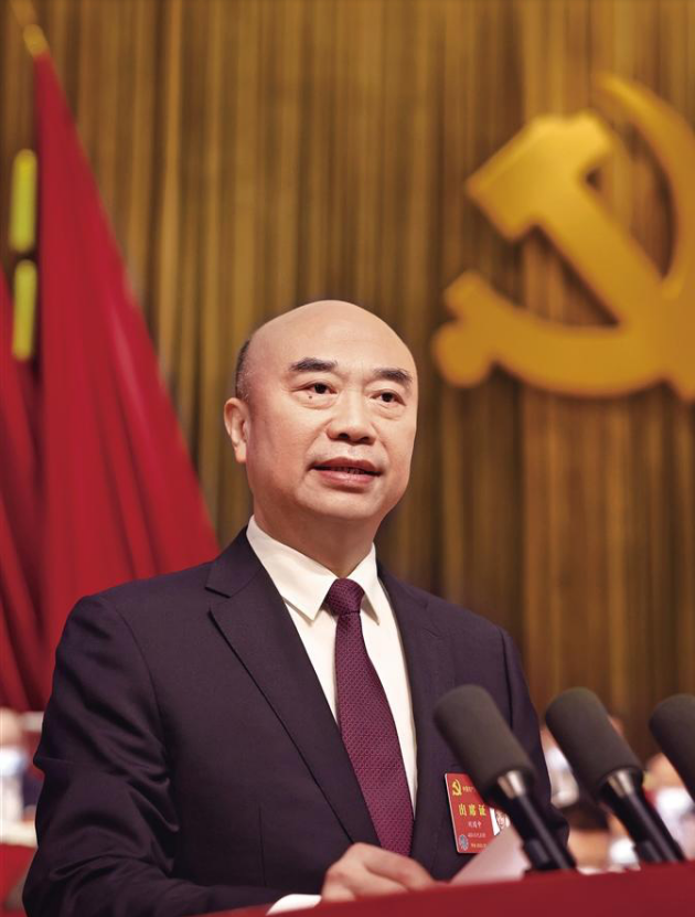 劉國中代表中共陜西省第十三屆委員會向大會作報告。