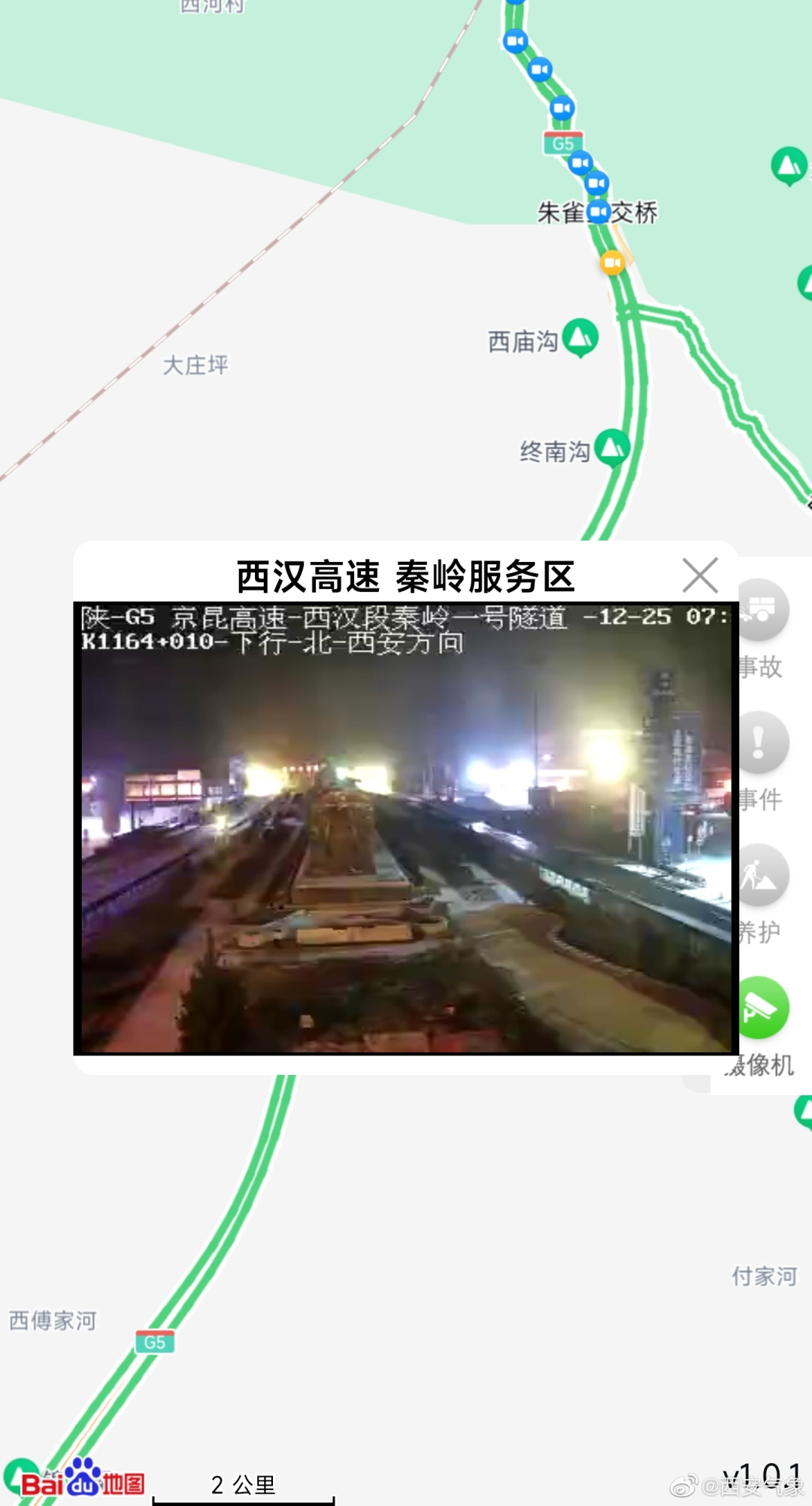 截至2022年12月25日09:17,受下雪天氣影響,包茂高速西富段馬額、銅川新區(qū)收費(fèi)站入口延安方向封閉,錦陽湖至花石崖之間所有收費(fèi)站入口、黃陵西至羊泉之間所有收費(fèi)站入口雙向封閉。