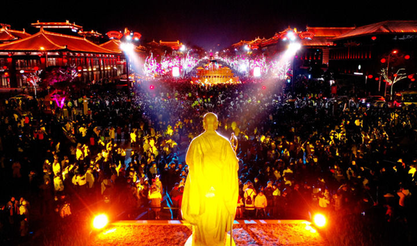 “《西游記》中九九八十一難,第一難是什么?”“不知道,不要緊,來,拍個(gè)照。”夜色漸濃,西安市大雁塔下的大唐不夜城華燈熠熠,流光溢彩。兩位身著古裝的演員,分別扮演唐代名人房玄齡和杜如晦,出題與游客進(jìn)行互動(dòng),幽默風(fēng)趣的提問和回答引得臺(tái)下觀眾不時(shí)發(fā)出陣陣歡笑。