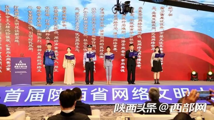 5月30日,首屆陜西省網(wǎng)絡(luò)文明大會在渭南召開。會上,陜西好青年代表、陜西省崗位學雷鋒標兵李甜甜,中國好人、全國向上向善好青年韓紅輝,陜西文旅推薦使者、陜西好網(wǎng)民馮佳晨,中國好人、陜西省道德模范曹金生,陜西好網(wǎng)民代表、西安電子科技大學學生王冠玉,渭南市瑞泉中學學生云漢宸等共同發(fā)布《共建網(wǎng)絡(luò)文明倡議書》。