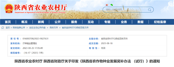 為促進陜西省農作物種業(yè)發(fā)展,加快推進種業(yè)振興行動,省農業(yè)農村廳、省財政廳研究制定了《陜西省農作物種業(yè)發(fā)展獎補辦法(試行)》,現印發(fā)給你們,請認真抓好落實。