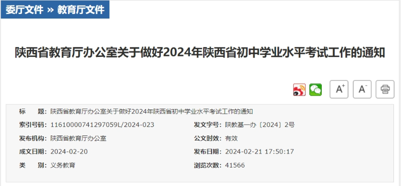2月21日記者從陜西省教育廳獲悉,2024年陜西省初中學(xué)業(yè)水平考試工作相關(guān)安排出爐,對考試對象、考試科目、各科目試卷滿分值及考試時(shí)長等做了明確。突出學(xué)生綜合素質(zhì)的考查,并通過優(yōu)化命題形式,引導(dǎo)減少死記硬背和“機(jī)械刷題”。任何單位與個(gè)人不得根據(jù)初中學(xué)業(yè)水平考試成績給學(xué)校和學(xué)生排隊(duì)或以任何形式公布名次。