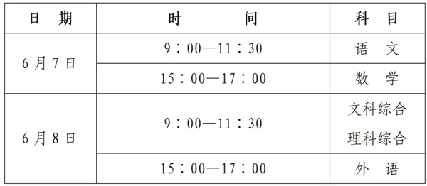 高考統(tǒng)考文史、藝術(shù)(文)類考試科目為語(yǔ)文、數(shù)學(xué)(文)、文科綜合、外語(yǔ);理工、體育、藝術(shù)(理)類考試科目為語(yǔ)文、數(shù)學(xué)(理)、理科綜合、外語(yǔ)。外語(yǔ)分為英語(yǔ)、俄語(yǔ)、日語(yǔ)、德語(yǔ)、法語(yǔ)、西班牙語(yǔ)6個(gè)語(yǔ)種,考生可任選其中一個(gè)語(yǔ)種參加考試。職教單招文化課考試科目為語(yǔ)文、數(shù)學(xué)、英語(yǔ)。
