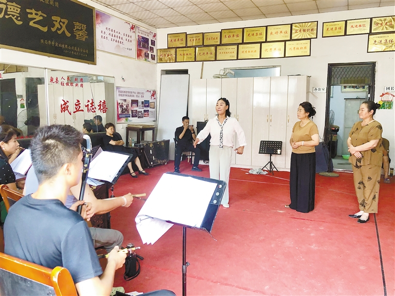 7月28日,乾縣弦板腔劇團的演員們在排練。 記者 張樂佳攝