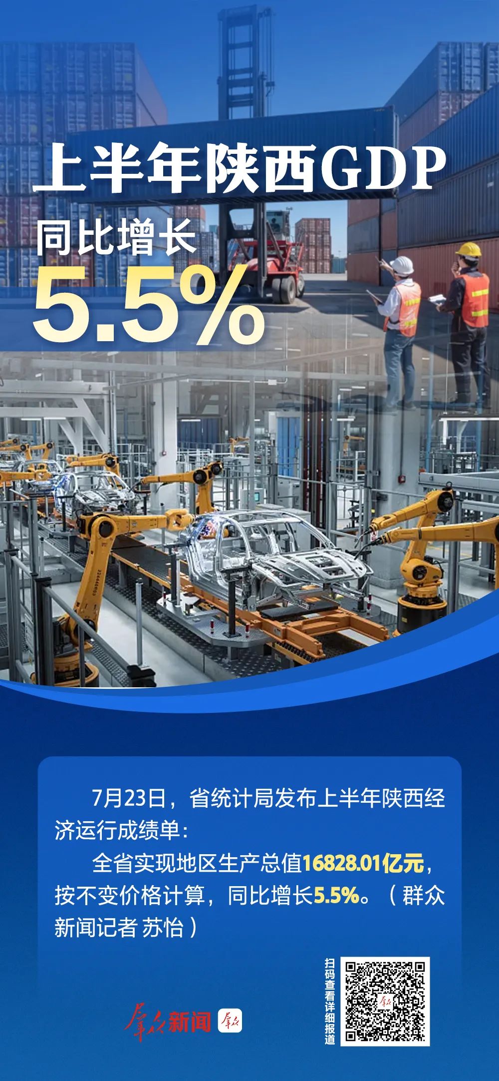 7月23日,省統(tǒng)計局發(fā)布上半年陜西經濟運行成績單:全省實現(xiàn)地區(qū)生產總值16828.01億元,按不變價格計算,同比增長5.5%。