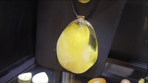 第18屆國(guó)際琥珀展上的琥珀展品。人民網(wǎng)記者 暨佩娟攝