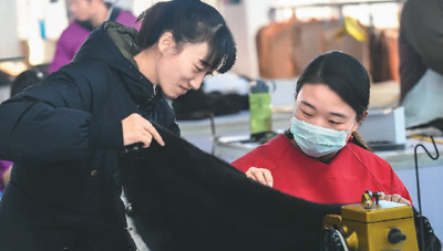 | 12月8日,河北省棗強(qiáng)縣某服裝企業(yè)工作人員正在工作中。目前,該縣年出口裘皮服裝服飾300余萬(wàn)件。 |