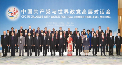 2017年11月30日,中國共產(chǎn)黨與世界政黨高層對話會在北京召開。12月1日,習近平總書記在會上發(fā)表講話時這樣說:中國共產(chǎn)黨愿廣交天下朋友。長期以來,中國共產(chǎn)黨同世界上160多個國家和地區(qū)的400多個政黨和政治組織保持著經(jīng)常性聯(lián)系,“朋友圈”不斷擴大。面向未來,中國共產(chǎn)黨愿同世界各國政黨加強往來,分享治黨治國經(jīng)驗,開展文明交流對話,增進彼此戰(zhàn)略信任,同世界各國人民一道,推動構(gòu)建人類命運共同體,攜手建設更加美好的世界!