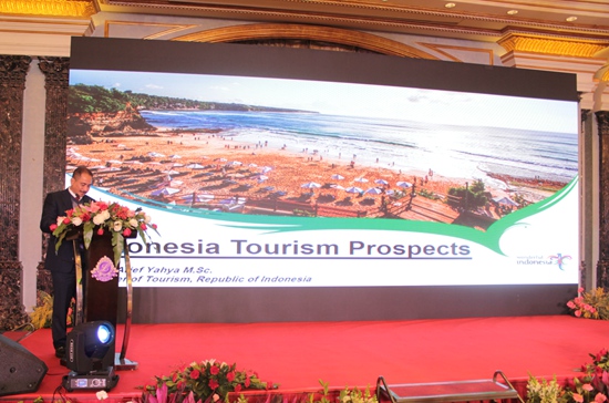 印尼國家旅游部部長阿里夫·雅赫亞發(fā)表講話