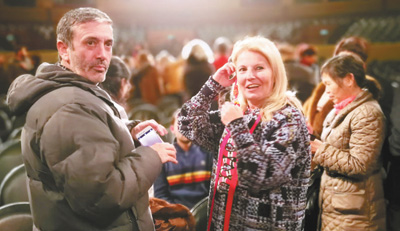 羅馬僑胞蔣鴻建夫婦是和外孫女一同來的。到意大利30多年,蔣鴻建笑妻子錢曉楓,“只要有中國藝術(shù)團(tuán)的演出,每場必看,而且都早早到場”。錢曉楓則“揭發(fā)”蔣鴻建:“這次他就是為了帶外孫女才來!北M管外孫女才2歲,蔣鴻建一本正經(jīng)地告訴記者:“要讓孩子從小了解中國文化。別看才2歲,她看得懂,還會說上海話呢!