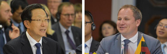 中國農(nóng)業(yè)農(nóng)村部部長韓長賦 立陶宛農(nóng)業(yè)部長吉埃德留斯·蘇爾普利斯