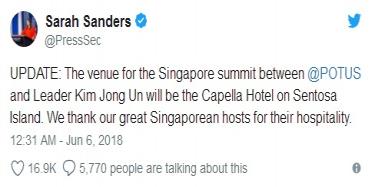 白宮公布“特金”會(huì)晤地 豪華酒店非傳統(tǒng)政治場(chǎng)所