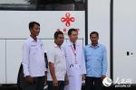 頌薩彌醫(yī)生與同事們在流動診所前合影。記者張志文攝 5月10日上午,中國援助柬埔寨流動診所交接儀式在金邊舉行。首批20輛印有兩國國旗圖案和“中……
