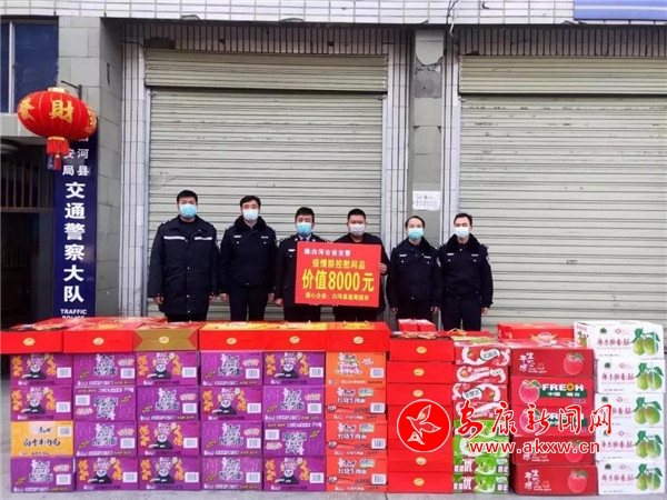 “看到你們公安交警為防控疫情,不畏寒冷,辛苦的工作我非常感動,作為一名共產(chǎn)黨員、一個企業(yè)家、一個公民,我也有義務(wù)盡一份社會責(zé)任。”2月8日下午,白河縣蠻哥南嶺子大眾超市將價值8000余元的水果、面包、牛奶等物資送到白河縣公安局交警大隊(duì),用濃濃的真誠厚意慰問戰(zhàn)斗在防控一線的公安干警。