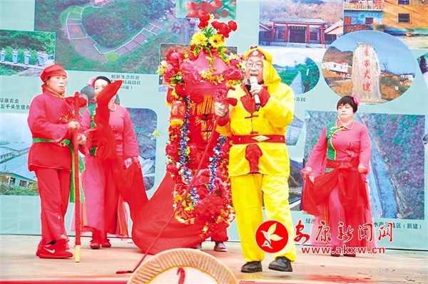 “黨的富民政策喲好哎!幸福的日子我們都趕上哎了喲!”“大美倉上好風哎光哎,桃花紅來菜花喲黃哎……”這種以景作詞、隨口編唱、充滿濃郁鄉(xiāng)土文化氣息的“花鼓……