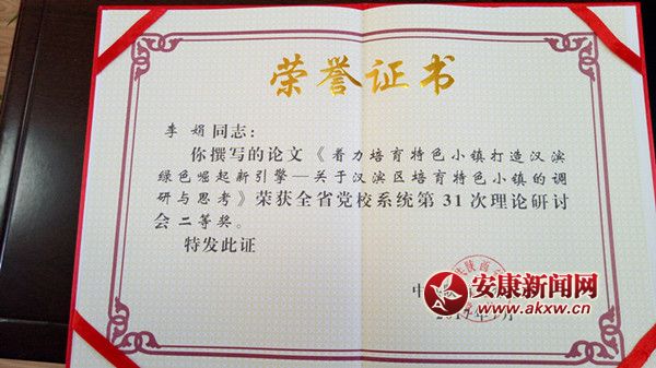 漢濱區(qū)黨校在全省黨校系統(tǒng)第31次理論研討會(huì)征文獲佳績