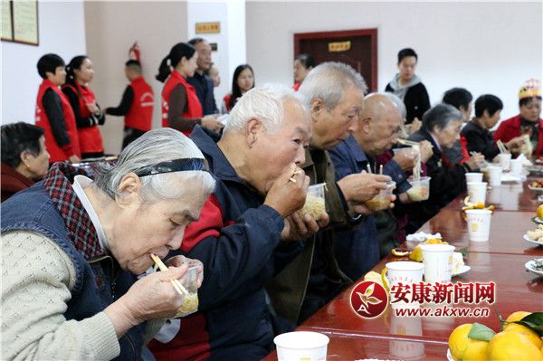 在后廚,志愿者們正緊張地為老人們準(zhǔn)備長壽面。金燦燦的愛心煎蛋、熱鍋里來回翻滾的面條、散著股股清香的醬料,讓人垂涎三尺。“呲溜、呲溜...”吃上這碗熱氣騰騰的長壽面,讓老人們心里熱熱乎乎。