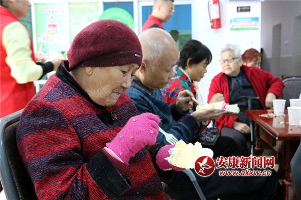 “祝您生日快樂,祝您生日快樂……”伴隨著熟悉的旋律,志愿者們將插滿蠟燭的大蛋糕緩緩地推到兩位壽星面前,老人既驚喜又感動,一時間,老人心底的暖流化成了眼角的淚光。唱完生日歌、許過了愿望、吹滅了蠟燭,老人們一塊兒吃著甜滋滋的蛋糕,都樂得合不攏嘴。