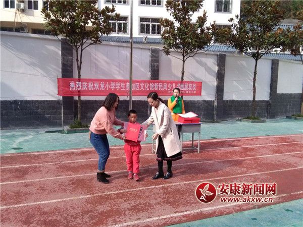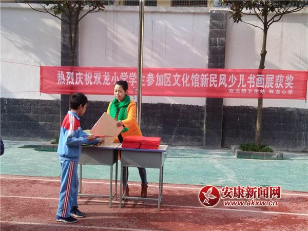 安康新聞網(wǎng)訊(通訊員 惠星 汪子文)11月20日上午,漢濱區(qū)文化館、雙龍鎮(zhèn)文化站、雙龍小學(xué)對入展?jié)h濱區(qū)文化館百花苑“社會主義新民風(fēng)”少兒書畫作品展的同學(xué)們在雙龍小學(xué)全校范圍內(nèi)進(jìn)行了表彰,并向參展小同學(xué)們頒發(fā)獲獎(jiǎng)證書和繪畫工具,鼓勵(lì)孩子們努力學(xué)習(xí),創(chuàng)作出更優(yōu)秀的書畫作品。