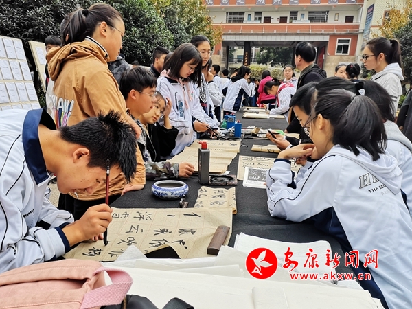 藝術(shù)節(jié)期間,學(xué)生社團組織了征文、書法、繪畫、攝影作品展示,營造出濃郁的校園文化氛圍。10月25日晚,學(xué)校組織了“歌向遠方,幸福安康”大型文藝晚會高三專場演出,精彩的文藝表演將本屆藝術(shù)節(jié)活動推向了高潮。