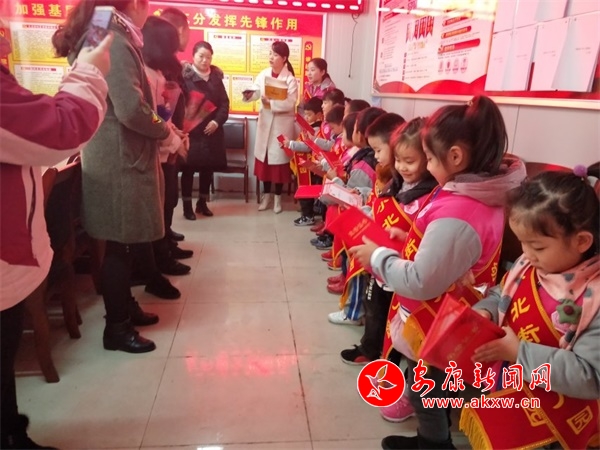 好奇的孩子們在社區(qū)工作人員的帶領(lǐng)下,一一參觀了社區(qū)便民服務(wù)大廳、社區(qū)圖書館、社區(qū)會(huì)議室,工作人員熱心向他們介紹社區(qū)的工作。在會(huì)議活動(dòng)室,孩子們向每位社區(qū)干部獻(xiàn)上一束花,表達(dá)了幼兒園師生們對奉獻(xiàn)在基層一線的社區(qū)干部們的關(guān)心。為了表示感謝,社區(qū)對孩子們進(jìn)行了表彰,并為他們送上了榮譽(yù)證書和精美書籍。