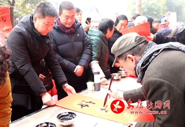 活動(dòng)現(xiàn)場,八位著名書法家手持毛筆,嫻熟轉(zhuǎn)動(dòng)手腕, 安康日?qǐng)?bào)社張思成社長剛把紅紙鋪開就被居民里三層外三層圍了起來,頃刻間,一副洋溢節(jié)日喜慶的“春臨大地百花艷 福至靈芝萬象新”春聯(lián)就寫好了。捧著稱心滿意的春聯(lián),劉先生連聲道謝。