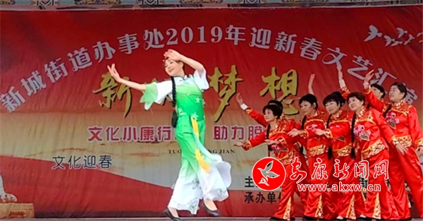 安康新聞網(wǎng)訊(通訊員 王穎 王潔)“歡天喜地迎小年,千家萬戶笑開顏”和著冬日暖陽,2019年1月28日下午,由漢濱區(qū)新城街道辦事處舉辦的“新城夢(mèng)想 文化小康行動(dòng)•助力脫貧攻堅(jiān)”2019年迎新春文藝匯演在香溪文化廣場(chǎng)隆重舉行,F(xiàn)場(chǎng)人頭攢動(dòng)、歡歌笑語,洋溢著一派喜氣洋洋的節(jié)日氣氛。