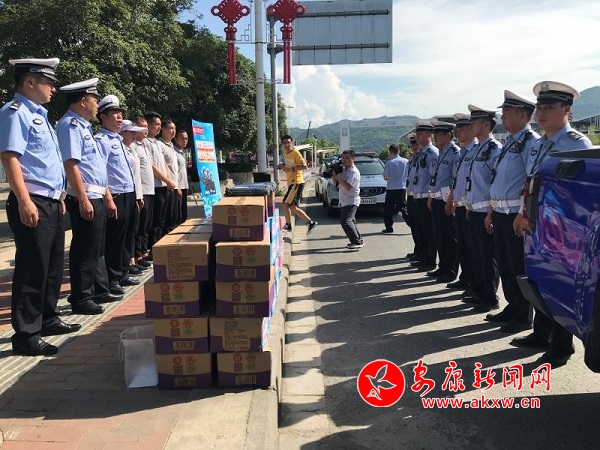 永成汽貿公司負責人表達了對高溫天氣下交警始終如一堅守崗位、辛苦工作的崇高敬意,“連日來持續(xù)38度的高溫,我們切身感受到了炎炎酷暑的威力,交警們頭頂烈日,不怕辛苦,戰(zhàn)斗在第一線,他們以高度的責任感確保了廣大市民的安全出行。我們公司理所應當承擔社會責任,表達企業(yè)愛心,算是盡自己的微薄之力,表達自己的敬意和感激之情。”