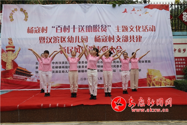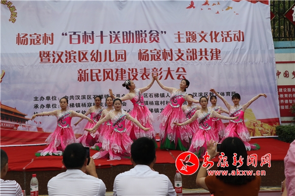 在熱鬧歡快的花鼓聲中,“好鄉(xiāng)賢”楊堯禮帶著孫子登臺,用純樸的方言唱出了《掃黑除惡樹新風》,贏得了在場群眾的陣陣掌聲;在村民自編自演的小品《摔碗》中,詼諧的語言和感人的情節(jié),感動得臺下群眾眼泛淚花; 在漢濱區(qū)幼兒園老師們表演舞蹈的《一千零一個愿望》后活動落下帷幕;顒悠陂g,愛心人士胡國財代表陜西省安康市中福工程有限公司為10名準大學生捐贈了每人2000元現(xiàn)金,漢濱區(qū)幼兒園也送上了特殊的關愛。