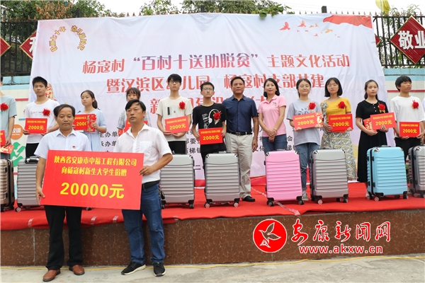 本網(wǎng)訊(實習記者 唐正飛)8月24日上午,一場別開生面的集體升學禮在楊寇村舉行,來自漢濱區(qū)教體局、石梯鎮(zhèn)等廣大干部群眾及愛心企業(yè)陜西省安康市中福工程有限公司百余人參加了此次活動,共同見證該村的道德模范表彰。