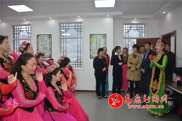 在南正街東巷子,鼓樓社區(qū)的離退休黨支部活動陣地上飄揚的國旗依然有歡度國慶的濃厚氛圍。“這邊是我們的黨員活動室也是我們的舞蹈教室,因為場地的限制,我們充分利用陣地建設(shè),一室多用。每月的15號是我們的主題黨日活動,在這里我們進行理論學(xué)習(xí),開展主題研討,平時也會在這里定期不定期的開展道德講堂和健康講座,讓黨員干部和居民群眾都能享受到道德教育和健康教育”一行人隨著解說員的步伐,參觀了社區(qū)離退休支部的健康活動室、餐廳、文娛室、心理咨詢室、黨員活動室等。