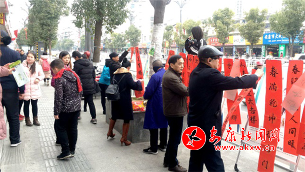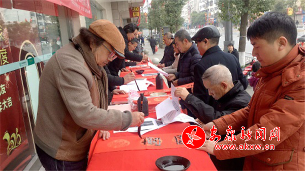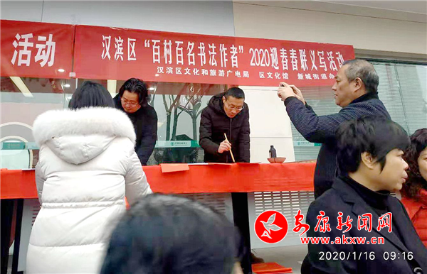 本網(wǎng)訊(通訊員 王艷 劉長(zhǎng)青 趙小順)“迎新春、貼春聯(lián)”是中華民族的傳統(tǒng)文化,突顯了年味民味,一副副精美的春聯(lián),蘊(yùn)含著辭舊迎新的美好祝福。2020年1月16日,漢濱區(qū)文化旅游廣電局、漢濱區(qū)文化館、新城街道辦分館在巴山中路舉辦“百村百名書(shū)法作者”義寫(xiě)和2020年“文化小康行動(dòng)——萬(wàn)副春聯(lián)進(jìn)農(nóng)家”活動(dòng)。