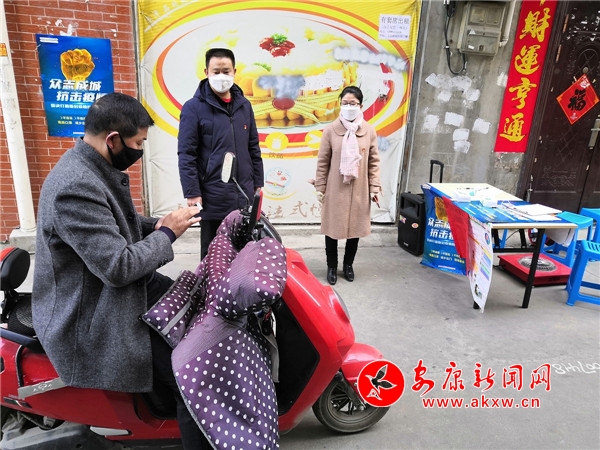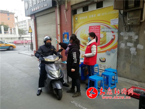 新鋪社區(qū)轄區(qū)老舊無物業(yè)小區(qū)多,黨校西巷里有5個(gè)老舊小區(qū),為筑牢疫情防控第一道防線,社區(qū)在巷口設(shè)立了疫情排查卡點(diǎn),社區(qū)工作人員不但要承擔(dān)戶外排查點(diǎn)的值守,還要承擔(dān)信息的核實(shí)和上報(bào)、帶社區(qū)醫(yī)生入戶測量體溫等任務(wù)。“五城聯(lián)創(chuàng)”幫扶單位安康市人大辦、市殘聯(lián)得知社區(qū)面臨困難后,市人大辦每天3名黨員、市殘聯(lián)1名黨員、中國聯(lián)通安康分公司1名黨員主動(dòng)到社區(qū)報(bào)到領(lǐng)崗,助社區(qū)共戰(zhàn)“疫”。他們不畏嚴(yán)寒、不懼風(fēng)險(xiǎn)、嚴(yán)防值守,對每一位進(jìn)出小區(qū)的人員認(rèn)真登記、仔細(xì)詢問,嚴(yán)格做好居民小區(qū)外來人員勸返,耐心勸導(dǎo)小區(qū)居民多居家、少外出,及時(shí)向小區(qū)群眾發(fā)放防控知識宣傳資料。