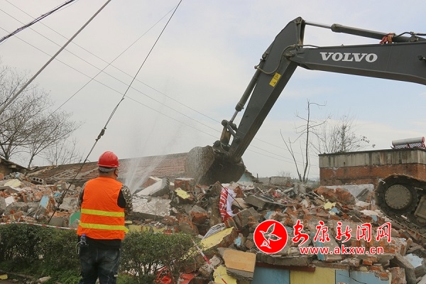 江北街道辦事處主任向陽、區(qū)統(tǒng)征中心副主任孔繁寶、水電三局房地產(chǎn)公司資產(chǎn)管理部主任徐振龍來到現(xiàn)場,和工作人員一起,對即將拆除的房屋進行再一次的全面大排查,在確定情況一切正常后,正式發(fā)令“開拆”。除塵、拆除、破碎、清運……拆除現(xiàn)場,工作人員分工配合、有序作業(yè)。