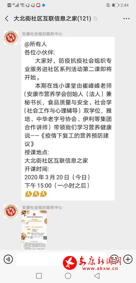 本網(wǎng)訊(通訊員 林超)近日,大北街社區(qū)邀請安康社會組織服務中心通過線上學習的新模式,積極開展2020年社區(qū)第一季度市民學校學習活動。