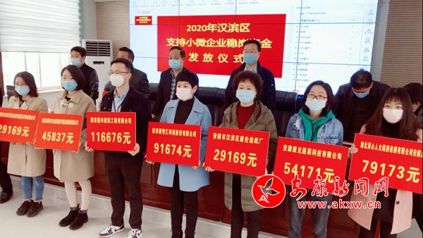 本網(wǎng)訊 (通訊員 朱駿 張敏)“漢濱區(qū)人社局這次發(fā)放的穩(wěn)崗補(bǔ)貼特別到位,切實(shí)解決了我們企業(yè)的現(xiàn)實(shí)困難,我們一定要專款專用,讓企業(yè)盡快恢復(fù)到疫前水平。”3月24日,在領(lǐng)取到9萬多元穩(wěn)崗資金后,陜西新智匯科技股份有限公司行政副總曾紅梅激動(dòng)地說道。當(dāng)天,漢濱區(qū)共為42家小微企業(yè)發(fā)放穩(wěn)崗資金280多萬元。