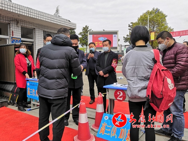 本網(wǎng)訊(通訊員 趙軍 張濤)今天是3月30日,也是陜西省教育廳規(guī)定高三開學(xué)復(fù)課的日子,老師和同學(xué)們?cè)俅蜗嗑,全力以赴?fù)課備考,從早七點(diǎn)多開始,安康城區(qū)漢濱高中的高三學(xué)生們陸續(xù)入校,大家不約而同全程佩戴口罩,在老師指引下,有序通過紅外測(cè)溫儀,并用酒精對(duì)全身和行李進(jìn)行消毒。