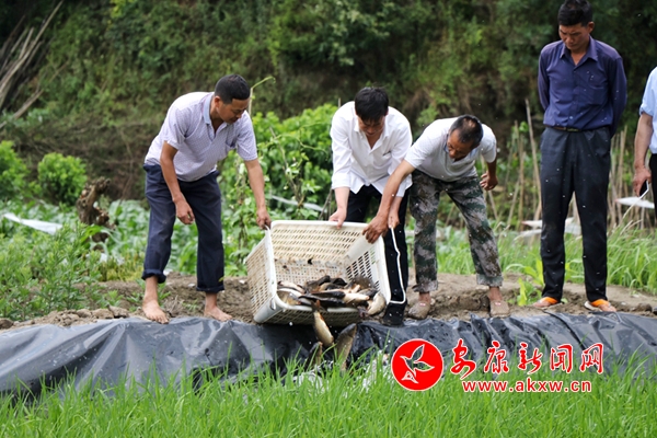 看到鄰村嘗到了甜頭,瓦房村今年也發(fā)展了52畝稻魚,并成立了瓦房村集體股份經(jīng)濟(jì)合作社,吸納18戶貧困戶加入。當(dāng)天,該村組織村民投放魚苗,并與公司簽訂了稻魚收購協(xié)議,預(yù)計第一批稻田生態(tài)魚10月份可以上市。